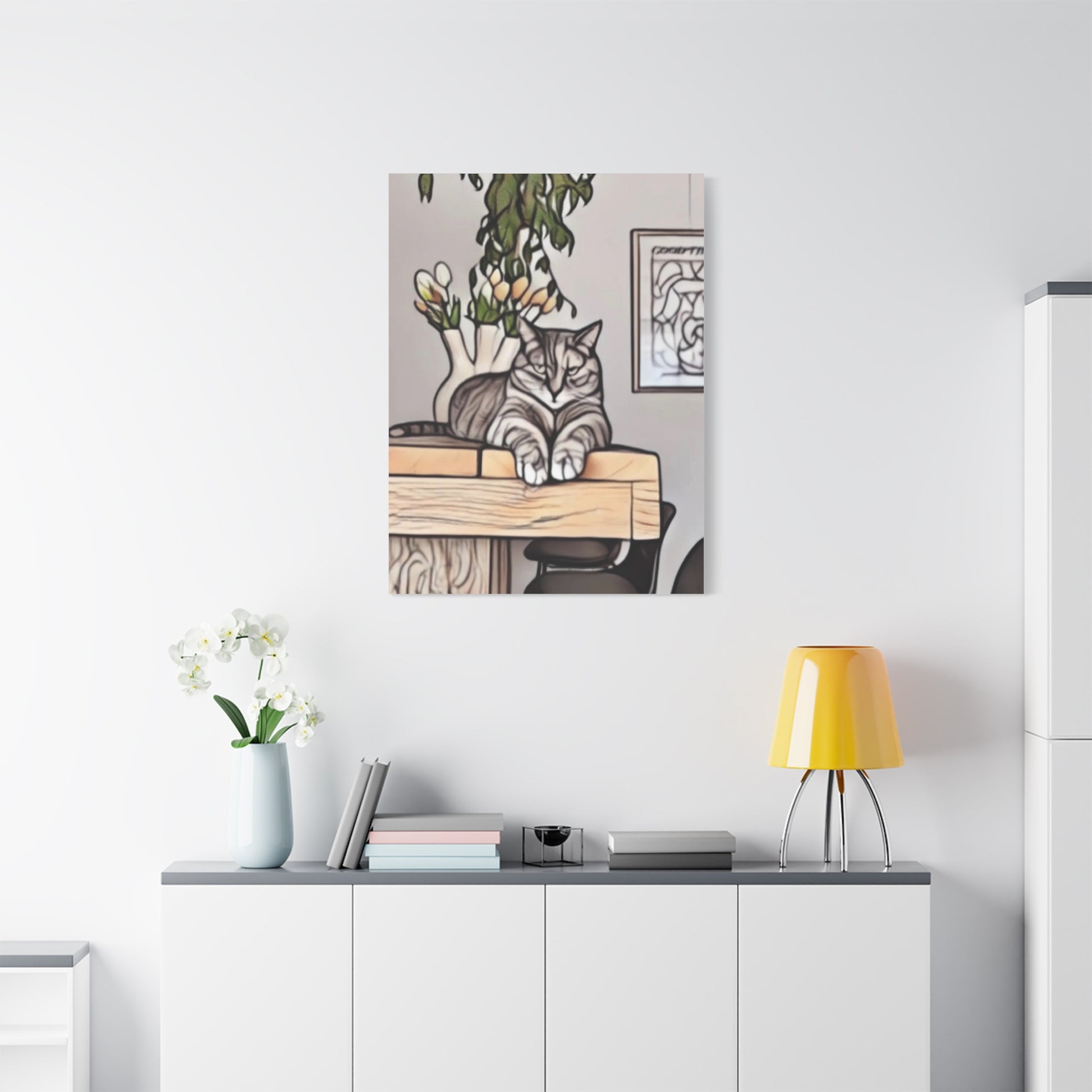 Elke GrumpyCat wordt geleverd met een achterhangsysteem voor een handige plaatsing. Het frame is gemaakt van hout dat op ethische wijze is verkregen uit hernieuwbare bossen.